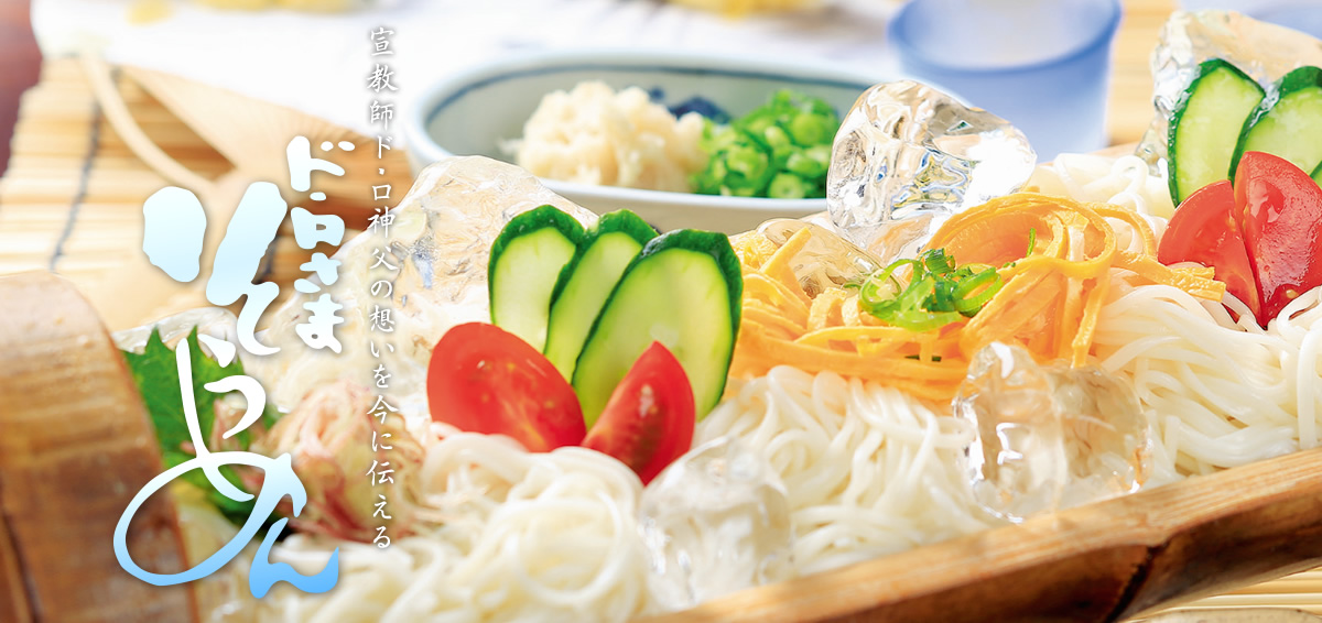 復活には多くの苦労が伴いましたが、最後まで取り組みを続けた「出津農産加工生産組合」が技術を受け継ぎ、そして平成20年(2008年)には(株)サンフリードがその意思と設備を継承し、正式に「出津ド・ロさま麺事業部」として製造・販売を始めました。